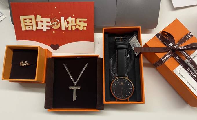 年會(huì)的第二大看點(diǎn),正是探探為員工定制的周年禮包。這份與愛情相關(guān)的驚喜禮包不僅有精美的吊墜項(xiàng)鏈、手表,還有以探探logo為原型的小狐貍戒指,堪稱互聯(lián)網(wǎng)公司最溫情的新年伴手禮。這份精致的禮品不僅是探探對(duì)員工們的答謝,同時(shí)也寄托了探探兩位領(lǐng)袖對(duì)未來愿景的期許,希望有更多年輕人拿起探探,沖破焦慮、勇敢愛,勇敢期待。