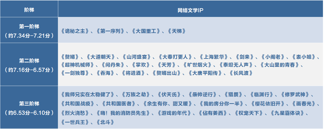 2019-2020年度網(wǎng)絡(luò)文學(xué)IP影視劇改編潛力表