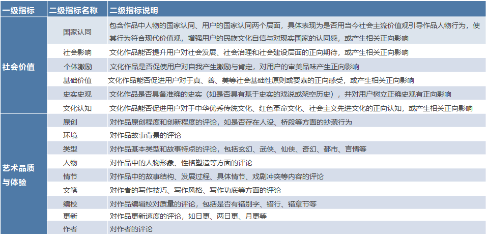 網(wǎng)絡(luò)文學(xué)用戶評(píng)論評(píng)價(jià)體系指標(biāo)說明