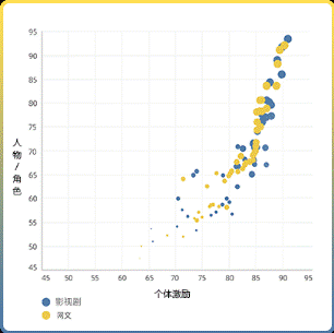 此外,評(píng)論量也是衡量用戶關(guān)注點(diǎn)的另一個(gè)重要標(biāo)準(zhǔn)。它反映了作品在哪些指標(biāo)上更吸引用戶,同時(shí)也解決了一些指標(biāo)“評(píng)分高”但“評(píng)分人數(shù)少”的問題。在這個(gè)緯度上,用戶最關(guān)注的網(wǎng)絡(luò)文學(xué)要素為“個(gè)體激勵(lì)”、“人物”,最關(guān)注的影視劇要素為“個(gè)體激勵(lì)”、“劇情”。