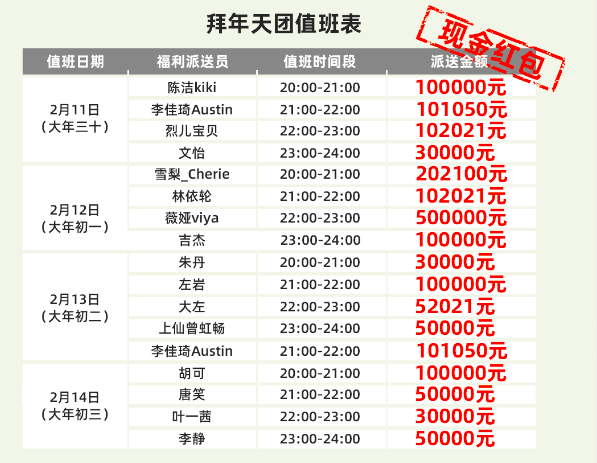 淘寶直播間里同樣有著濃濃的春節氛圍,薇婭viya、李佳琦Austin、烈兒寶貝、雪梨、陳潔kiki、林依輪、吉杰、朱丹等主播將在自己的直播間派發總計100萬紅包。每天還有近萬名淘寶主播一起陪大家嘮嗑、發福利,開心過春節。