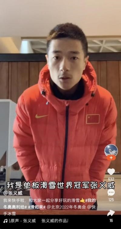 此外,直播當(dāng)天,單板滑雪世界冠軍@張義威官宣入駐快手,發(fā)布了自己的第一條短視頻作品,并表示今后會分享一些滑雪技巧和有趣的視頻,以此來讓更多人了解冰雪運(yùn)動。張義威的加入為“我的冬奧奧利給”主題活動增加了明星力量,燃起了更多老鐵助力冬奧的熱情。