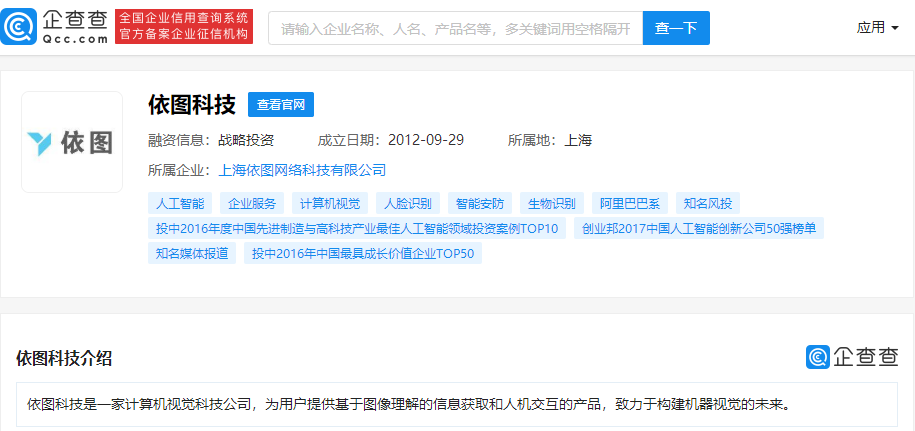 企查查APP顯示,上海依圖網(wǎng)絡(luò)科技有限公司是一家計算機視覺科技公司,為用戶提供基于圖像理解的信息獲取和人機交互的產(chǎn)品,致力于構(gòu)建機器視覺的未來,公司成立于2012年。企查查顯示,依圖科技至今已完成10輪融資,交易對手包括紅杉資本、高瓴資本、真格基金、云鋒基金等。