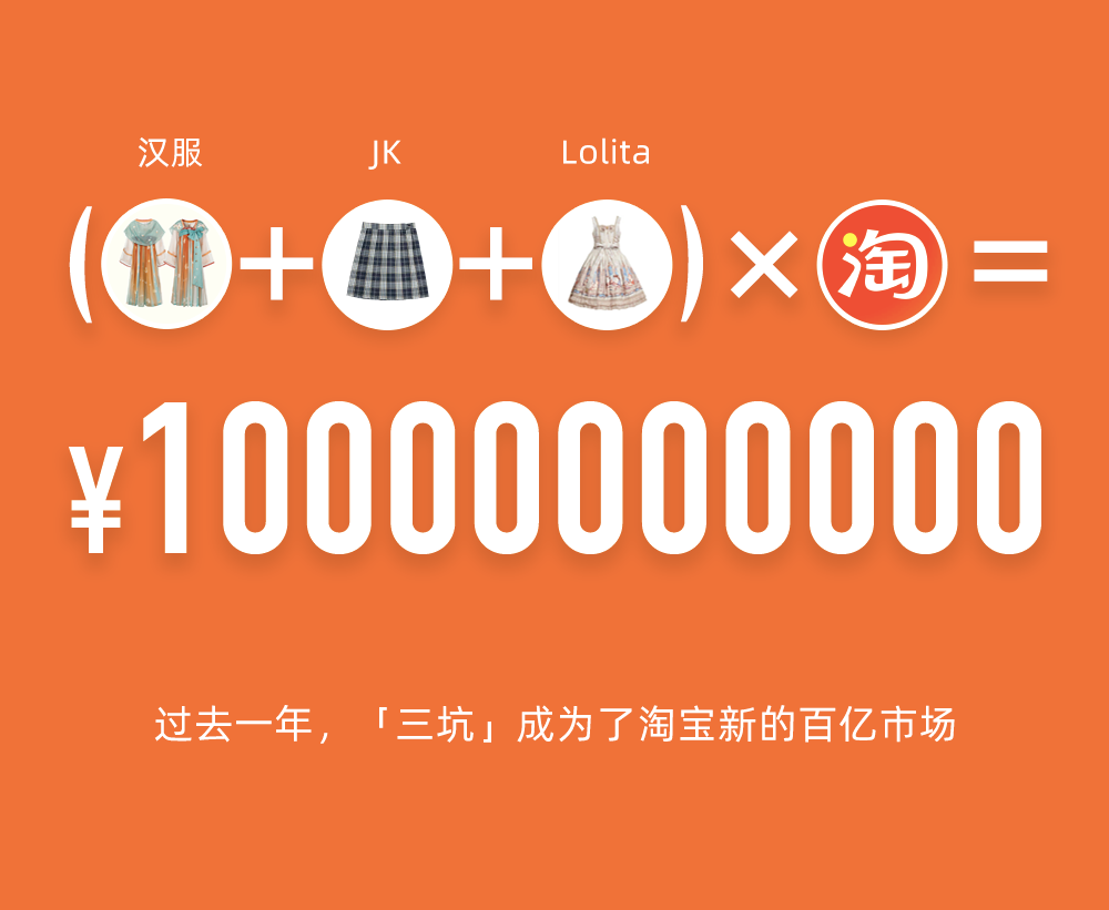 而Z世代的消費力也不容小覷,“JK制服”入選淘寶2020十大商品,Q2成交金額同步暴漲255%,天貓“雙11”期間,JK制服、漢服、洛麗塔成交額增幅是女士襯衣的1.26倍,“三坑”市場全年銷售額更是達到了百億級的規模。