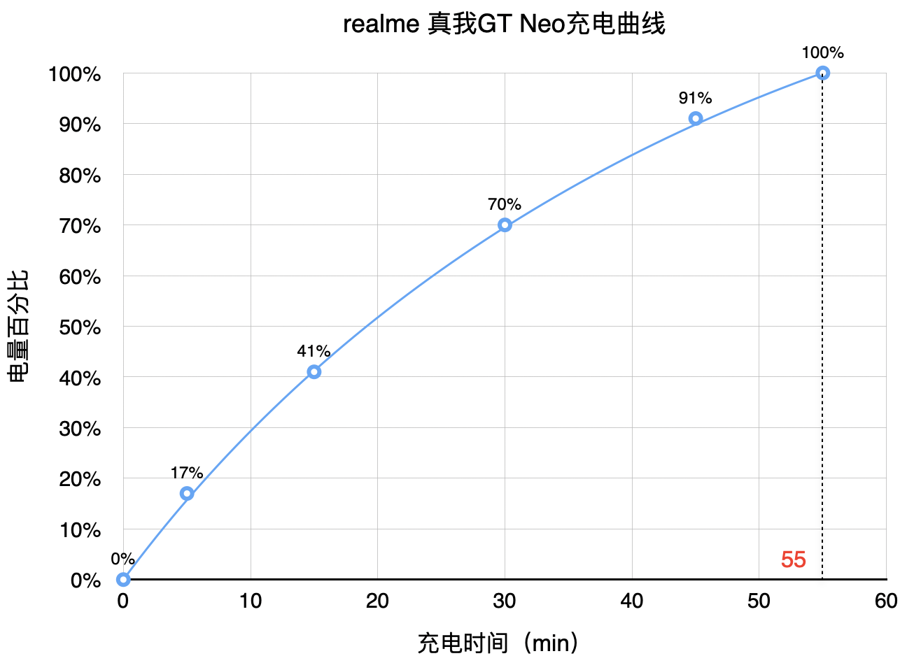 實(shí)測(cè)使用原裝充電器材為realme 真我GT Neo充電,半小時(shí)可為手機(jī)充電70%,0-100%共耗時(shí)55分鐘??梢哉f,realme 真我GT Neo是realme面向“潮玩科技”的又一次致敬。一方面,通過個(gè)性鮮明的設(shè)計(jì),滿足新時(shí)代青年用戶更為多元化的需求。另一方面,天璣1200出彩的性能表現(xiàn),也使其成為性能旗艦中的“性價(jià)比”強(qiáng)者,同樣價(jià)格里性能“敢越級(jí)”的急先鋒。