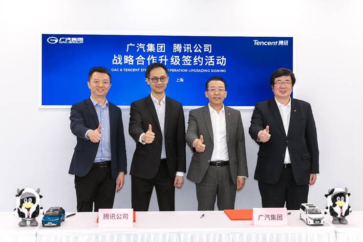 速途網4月19日消息(報道:李楠)今日,廣州汽車集團股份有限公司(以下簡稱“廣汽集團”)與深圳市騰訊計算機系統有限公司(以下簡稱“騰訊”)在上海舉行戰略合作升級簽約活動。在廣汽集團總經理馮興亞、騰訊高級執行副總裁湯道生見證下,廣汽集團常務副總經理吳松、騰訊副總裁鐘翔平代表雙方簽約。