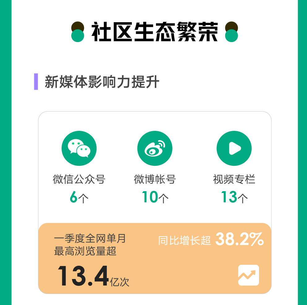 自媒體內(nèi)容以及配合內(nèi)容素材在短視頻等新渠道的投放,為平臺帶來了更加精準(zhǔn)的流量。 2021年Q1,新氧包括微信、微博、視頻專欄在內(nèi)的自媒體矩陣,全網(wǎng)單月最高瀏覽量13.4億次,同比增長超38.2%。