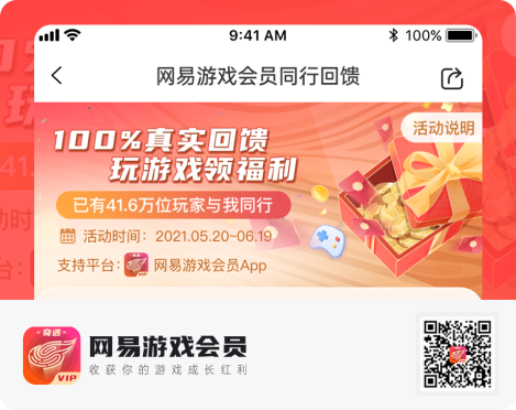 5月20日,網易游戲聯合《夢幻西游》三維版、《大話西游》手游、《陰陽師》、《天諭》手游、《一夢江湖》、《第五人格》等旗下多款游戲共同推出“游戲同行回饋”活動。活動期間,玩家游戲在線超過30分鐘,即可前往網易游戲會員俱樂部領取現金紅包、游戲周邊、數碼潮品、生活好物等福利。活動一經上線便受到玩家的廣泛追捧,首日玩家參與超過20萬,許多玩家紛紛在社交媒體上分享收獲的喜悅。