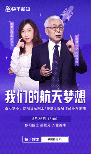 6月26日,“嫦娥之父”歐陽自遠(yuǎn)院士在快手開啟“我們的航天夢想”主題直播,分享自身學(xué)習(xí)成長與科研探索之路。