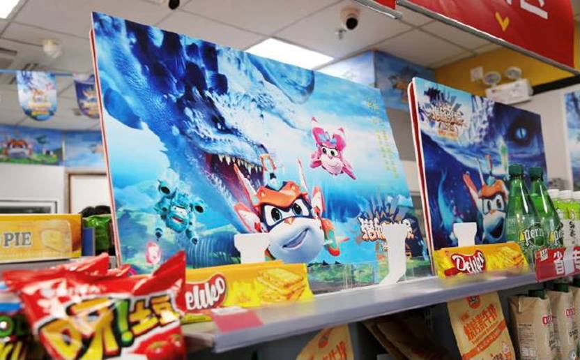 “沒想到接小朋友放學還能在便利蜂看到《潛艇總動員:地心游記》的宣傳畫面”,左手牽著4歲兒子的李女士表示,“雖然家里玩具很多,但還是給小朋友買了變形機器人,就當兒童節的禮物了。”