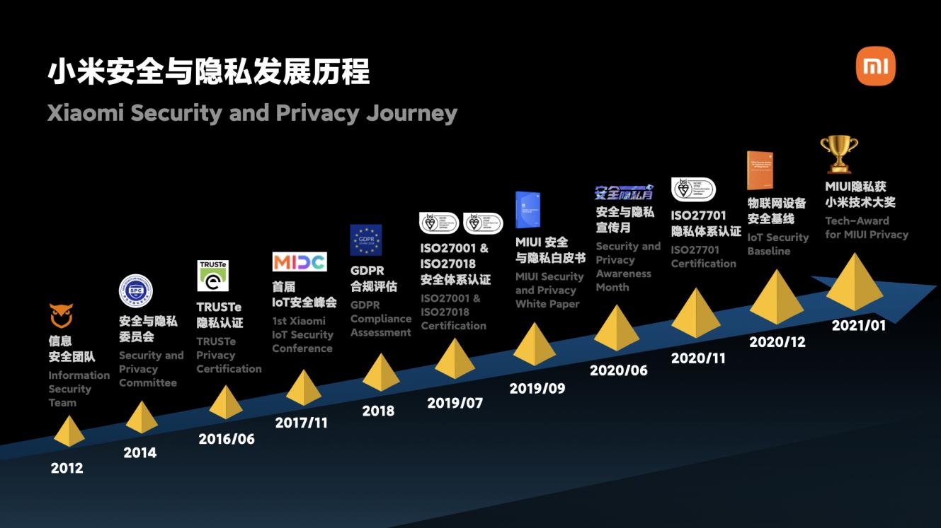為了更好地保護用戶的安全與隱私,小米秉承”企業責任、用戶可控、公開透明、安全保障、法律合規”五大隱私保護原則,將用戶的信息安全與隱私保護作為最高優先級的事情來對待。記者獲悉,2012年小米便成立了專門的信息安全團隊,2014年成立小米安全與隱私委員會,崔寶秋親自擔任委員會主席。2016年,小米成為國內第一家通過國際知名機構TrustArc隱私認證的企業。2018年,小米順利通過了外部咨詢公司的歐盟GDPR合規評估。2019年,小米獲得了三項國際ISO安全與隱私認證,并發布了MIUI安全與隱私白皮書。2020年,小米正式發布隱私品牌并舉辦了首屆安全與隱私宣傳月活動。