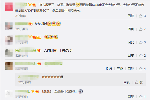 回應一經發出,廣大網友紛紛在評論區內就此事發表了自己的看法:“假消息,請大家以官宣為準、無良媒體,不管真假就肆意轉發,真是不擔責任啊,什么玩意、官方辟謠了,笑死一群造謠,而且就算6G有也不會大肆公開,大肆公開不就告訴美國人我們要研發6G了,然后美國也攪和進來。”當然也有部分網友亂入:“還有啊,趕緊把你的手機升級一下鴻蒙。”