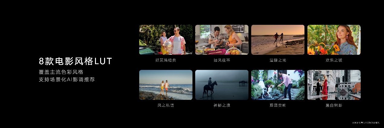 結合榮耀AI影像技術,榮耀Magic3系列推出AI 影調推薦功能(此功能后續通過OTA升級支持),識別場景元素,智能匹配并推薦適合風格的LUT影調,用戶也可以通過專業模式下錄制Log視頻,再通過相冊視頻剪輯功能自行添加喜歡的LUT影調。榮耀Magic3系列實現了電影工業視頻流程AI化,使專業走向大眾,讓用戶隨手便可拍出電影大片,充分表達自己的情緒與審美。