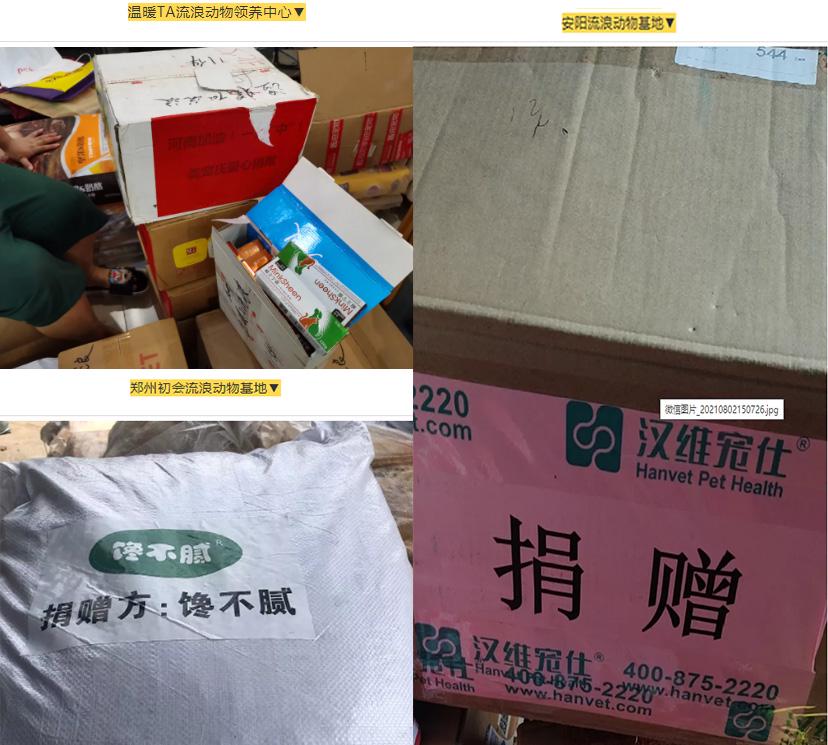 截至目前,11家受災的流浪動物救助基地均已經(jīng)收到了愛心捐贈物資。