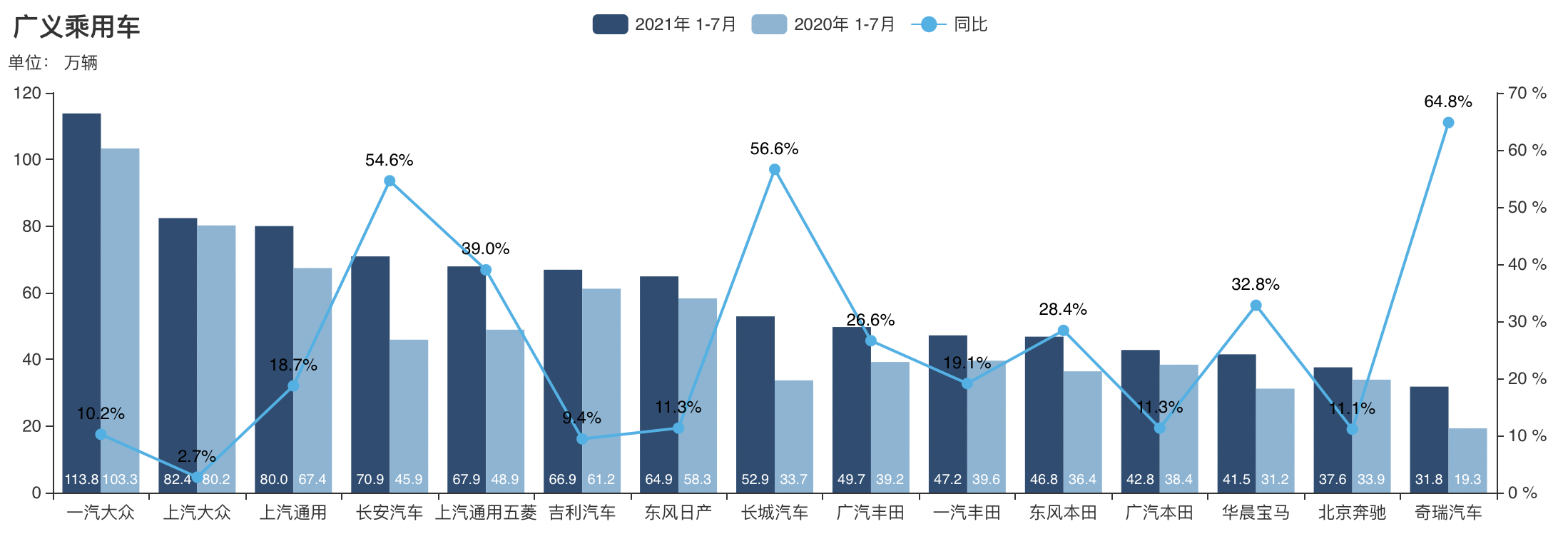 根據(jù)乘聯(lián)會發(fā)布的2021年乘用車廠商排名顯示,吉利汽車1-7月累計(jì)銷量為66.9萬輛,相比去年同期增長9.4%,然而僅從7月銷量來看,吉利汽車銷量為9.2萬輛,同比減少了8.4%。可見,吉利汽車未來的銷量表現(xiàn)仍然具有諸多不確定性。