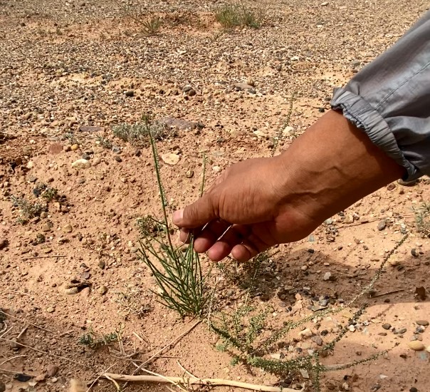 277號林護(hù)林員介紹說,由于阿拉善地區(qū)降水量較少,按照生態(tài)承載能力和科學(xué)綠化的要求,梭梭種植規(guī)劃的密度比較稀疏,每畝種植數(shù)量約為45棵。同時(shí),梭梭是一種適合荒漠化地區(qū)的低矮灌木,地表以上較矮小,但根扎得深,主要靠根部來固沙。一遇到干旱年份,梭梭會(huì)變得更矮,以減少水分流失,這也是梭梭為應(yīng)對干旱而進(jìn)化出的本領(lǐng)。