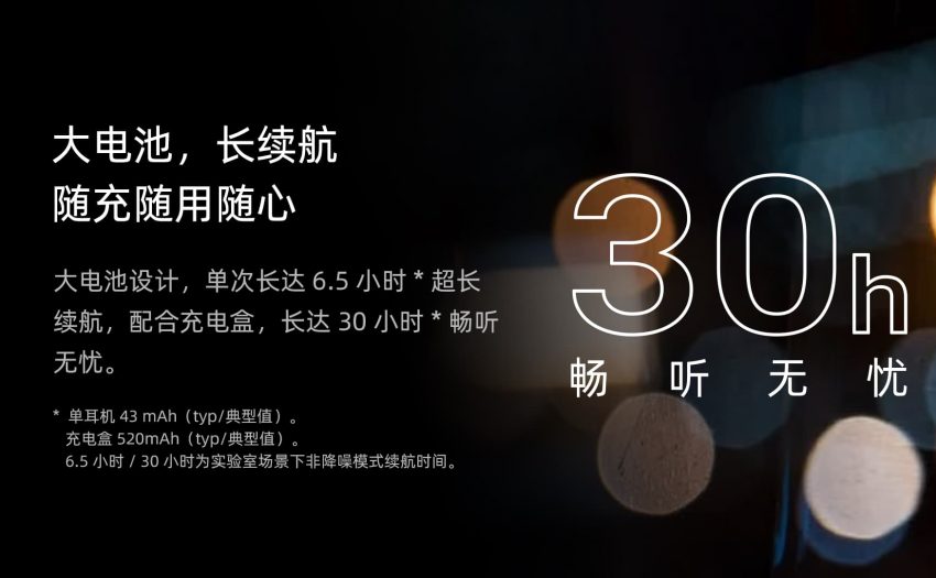 魅藍(lán)?Blus?主動(dòng)降噪耳機(jī)帶來了一次超長續(xù)航的暢聽體驗(yàn),長達(dá)?30h?的續(xù)航表現(xiàn)源自于其?43mAh(單機(jī)典型值)的大容量電池與充電倉?520mAh?(典型值)的超大電池容量。