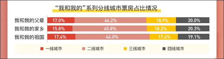 《我和我的父輩》為“我和我的”系列電影中的第三部。和之前兩部相比,《父輩》的“想看-購票”轉化率在上映次日也發生了“逆跌”,后續幾日,該數值較前兩部也有所提升,這說明映前積累的想看觀眾,更多選擇在后續時間完成購票轉化。此外,《父輩》在三四線城市的票房占比接近四成,超過兩部前作,這也印證了“我和我的”系列持續釋放的IP品牌效應。