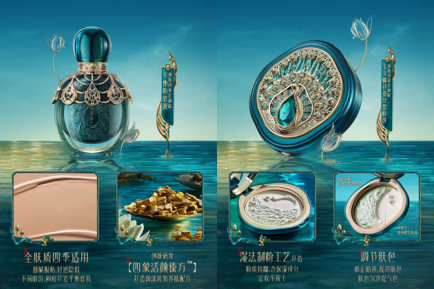 在取方傣族花植成分、以花入妝的基礎上,花西子攜手工藝美術大師袁長君,以傣族孔雀圖騰為設計靈感,結合現(xiàn)代工藝技術,讓華美靈動的傣族孔雀“落”于產(chǎn)品之上。同時,還攜手明星彩妝師王嘉進行妝容共創(chuàng),以傣族印象為靈感,打造兼具自信氣質與時尚感的孔雀妝、花養(yǎng)妝,演繹民族之美。