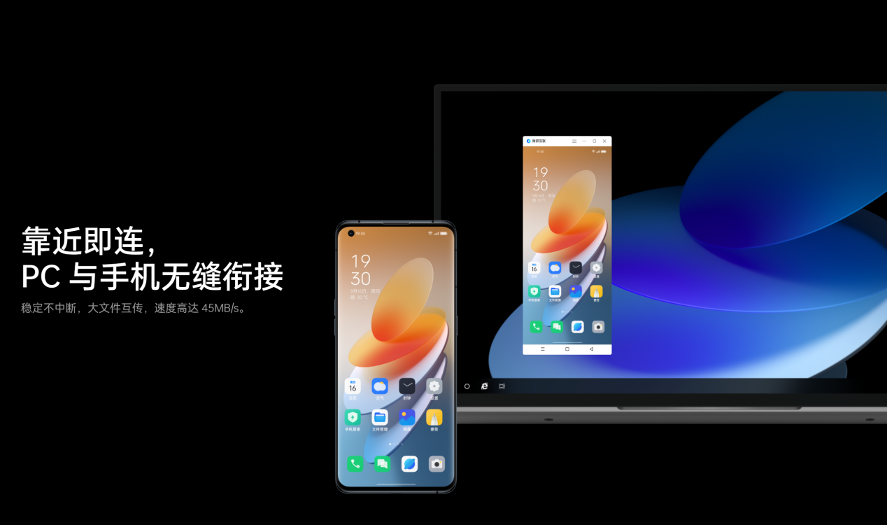 除了流暢之外,ColorOS 12在智慧互聯以及功能易用等方面也可圈可點。新增的跨屏互聯功能,可以通過一鍵閃聯在電腦上使用所有的手機功能,設備間的文件和數據還能快速共享,除了最高可達45MB/S的極速互傳之外,還可以直接在電腦上編輯手機中的文檔。值得一提的是,ColorOS 12的跨屏互聯還有極高的適配度,可支持市面上絕大多數Windows 10及以上的主流品牌電腦。