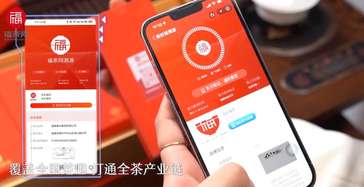12月10日,福茶網(wǎng)聯(lián)合螞蟻鏈推出基于區(qū)塊鏈技術(shù)的溯源產(chǎn)品“福茶碼”,實(shí)現(xiàn)了從種植、加工、質(zhì)檢、物流、銷售的茶葉全生命周期溯源驗(yàn)證,提供防偽溯源一體化服務(wù)。消費(fèi)者掃碼即可驗(yàn)真,并獲得茶葉產(chǎn)地、品種、質(zhì)檢報(bào)告等全部信息。