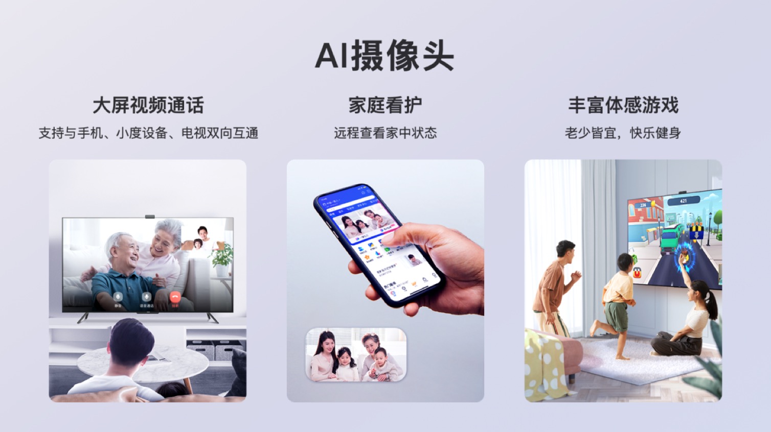 作為業內首個以“攝像頭”命名的智能電視,小度智能攝像頭電視V75可支持與手機、小度等其他智能產品雙向互通互聯,視頻通話輕松實現,并具有家庭看護能力,還有豐富的體感游戲供用戶選擇。小度科技CEO景鯤認為,未來所有電視都將成為智能攝像頭電視,AI攝像頭可以擴展電視服務邊界,使其具備更多功能和可能性,成為與用戶產生智能交互的密切接觸點。