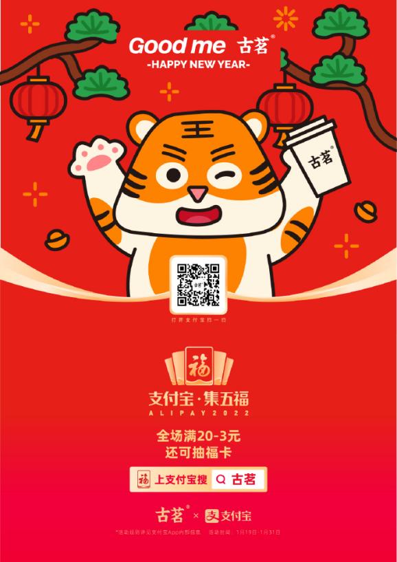 集五福今日正式開啟,你集齊五福了嘛?今天,古茗官方宣布,1月19日起顧客在線下門店掃碼進入支付寶小程序,或打開支付寶搜索古茗,就有機會抽福卡。此外,還有全場滿20減3的活動,古茗的“忠實粉絲”們千萬別錯過了。