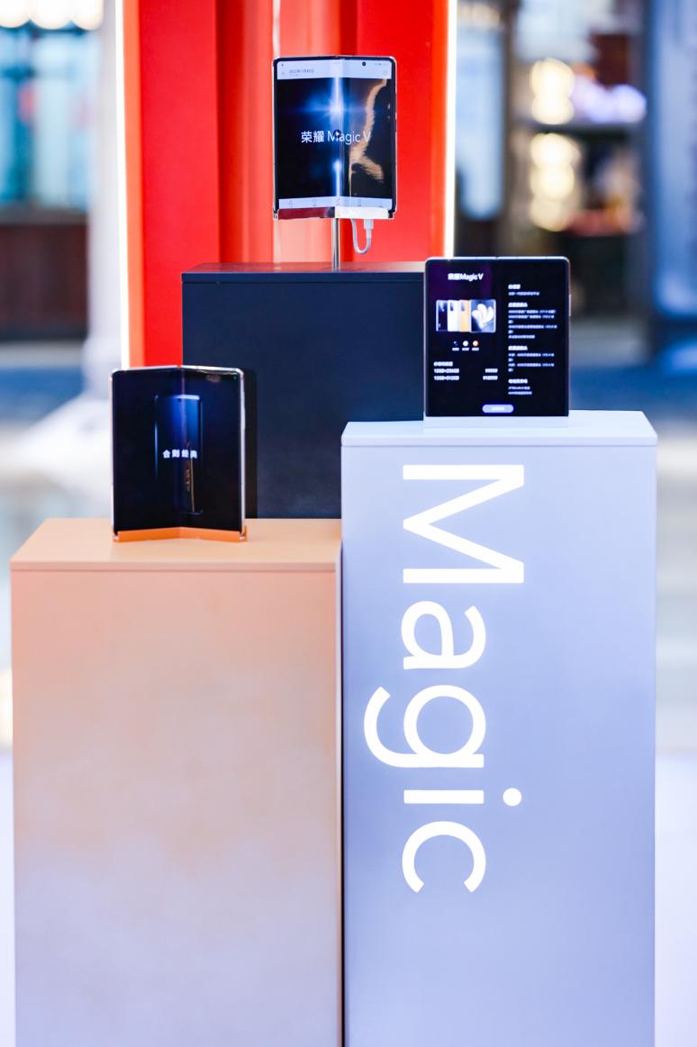 新年來榮耀新年影像館打卡,可以體驗到榮耀Magic V、榮耀Magic 3系列、榮耀手表 GS 3等中國冰雪健兒同款年貨。還能參與趣味互動桌上冰壺,與親朋好友用影像定格幸福瞬間。
