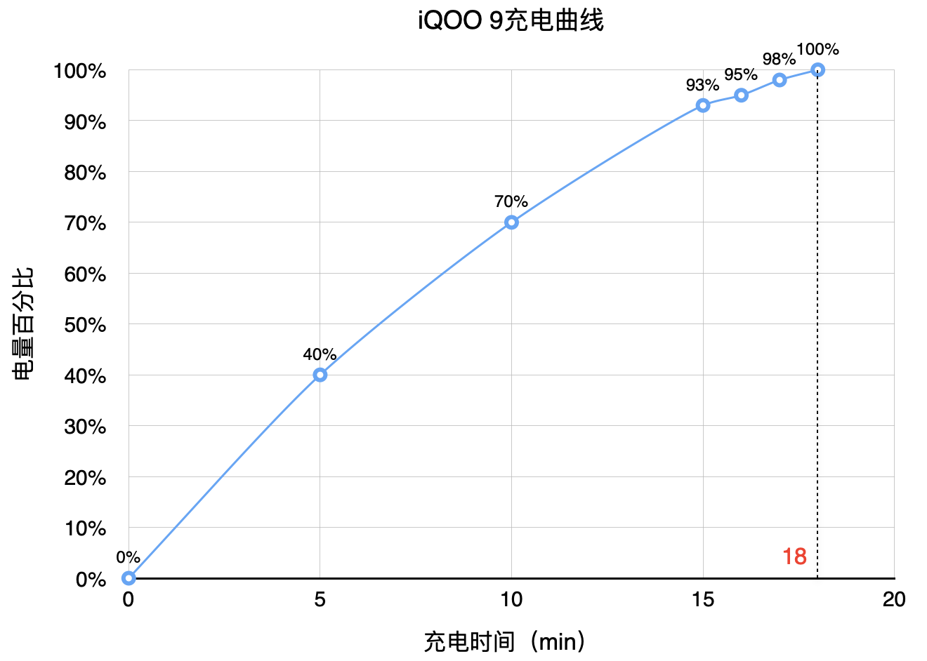 續航方面,iQOO 9內置等效4700mAh雙電芯電池,并全系支持120W有線閃充,實測使用原裝充電器為充電,0-100%充電僅需18分鐘,只需要游戲的“中場休息”時間,就可以為手機快速的補充電量。