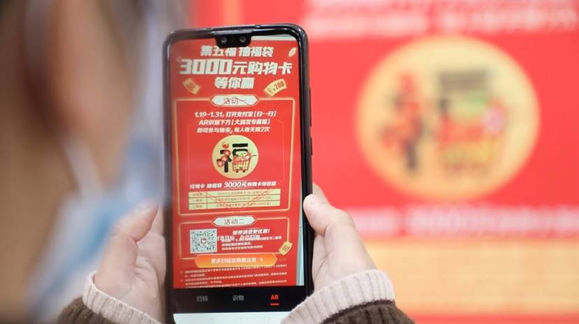 對于像大潤發(fā)這樣的賣場來說,參與新年五福活動,將備年貨+集五福合二為一,不僅能夠快速烘托出過年熱鬧的氣氛,更能夠通過掃福的過程,提高和用戶的互動頻次,拉一波顧客好感度。