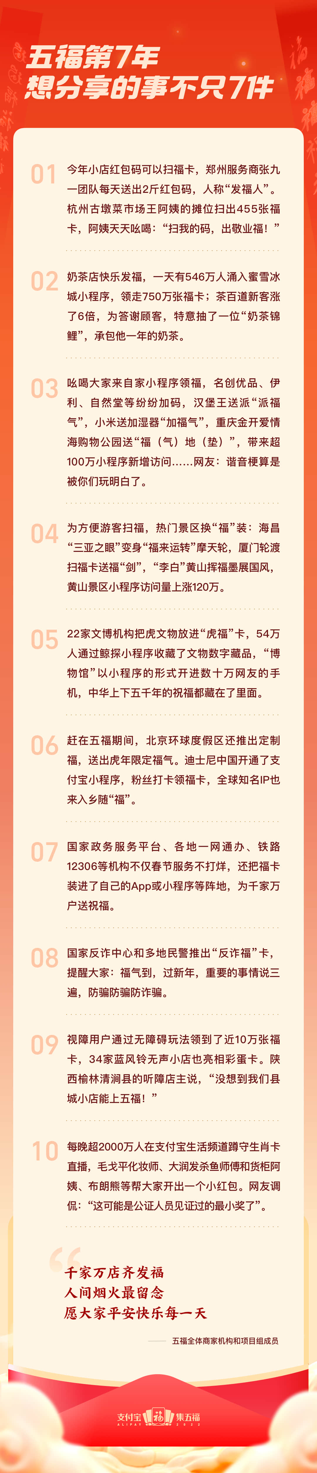 五福不僅是大眾慶祝春節的新年俗,也成為互聯網助力實體經濟的新手段之一。1000多個商家小程序為全國用戶發放福卡2.88億張,帶動生意增長,小程序日均客流提升300%。