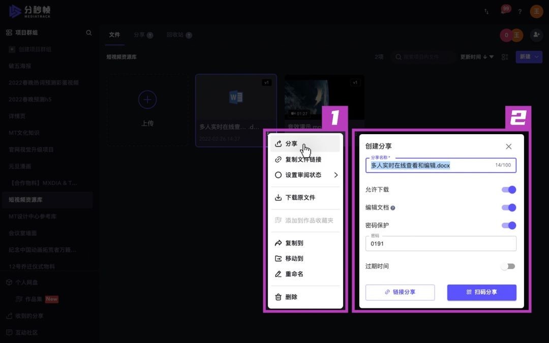 為此,分秒幀專門開發了在線文檔功能,將視頻創意策劃和制作、審閱的場景徹底打通,讓創作者們從視頻立項到成片的協作,都能在分秒幀一站式完成。