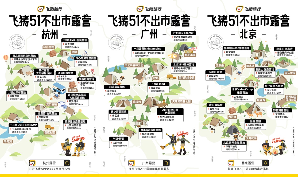 (圖:飛豬推出多個城市的露營地圖)