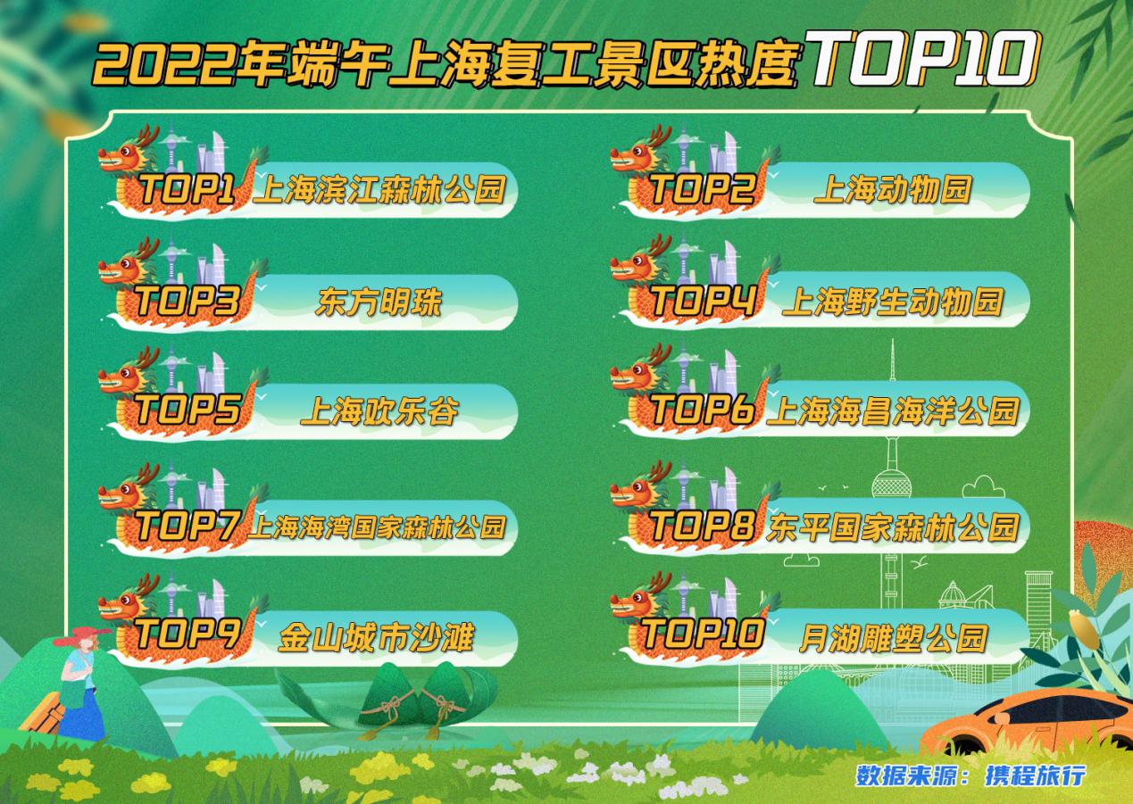 6月4日上午10點,上海海昌海洋公園門票開售2秒后即全部售罄。上海歡樂谷端午日均預訂票量較3月日均票量分別增長超7倍。從端午假期前兩日的入園情況來看,熱度排名前10的景區(qū)主要以動物園和森林公園為主。地標建筑東方明珠同樣是熱門打卡地。