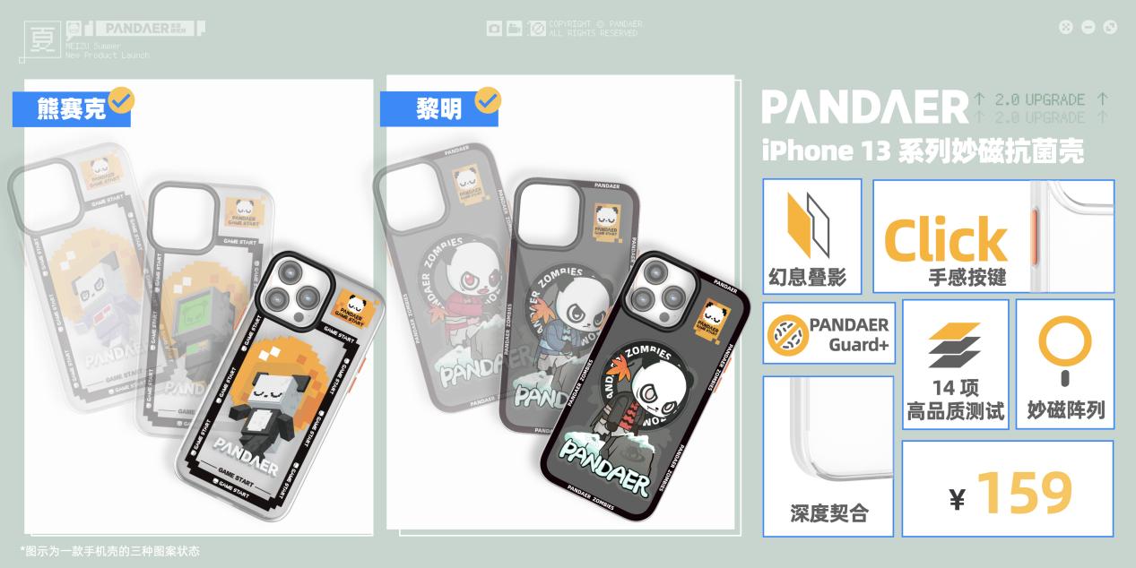 PANDAER 生活研究所部分,魅族旗艦系列 PANDAER 獨角獸 IML 妙磁抗菌殼·雪人大冒險售價 129 元,現已開售;iPhone 13 系列 PANDAER 有限藝術妙磁抗菌殼,零售價 199 元,預購價 169 元;iPhone 13 系列 PANDAER 往日既視 妙磁抗菌殼零售價 139 元;現已開啟預約加購,于 6 月 21 日開售。iPhone 13 系列 GAME START 妙磁抗菌殼零售價 159 元;現已開啟預約加購,于 7 月 4 日開售。魅族旗艦系列PANDAER 往日既視 妙磁抗菌殼零售價 129 元,現已開啟預售,于 6 月 21 日正式開售。PANDAER GAMER START 膚感 T 恤零售價 129 元起,現已開啟預售,于 6 月 22 日正式開售。PANDAER 版畫、GAME START 斜挎包、GAME START 副本晴雨傘將陸續登陸魅族官網渴物眾籌。