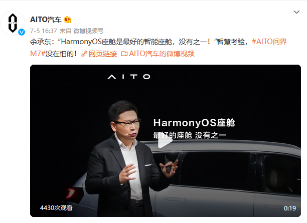 然而,從活動(dòng)規(guī)格與余承東在本次發(fā)布活動(dòng)上的“強(qiáng)勢(shì)”態(tài)度來看, AITO品牌實(shí)際主導(dǎo)權(quán)、掌舵權(quán)都在向華為這邊傾斜。“M5是用百萬豪車的標(biāo)準(zhǔn)來定義,問界M7要把超越百萬豪車體驗(yàn)的標(biāo)準(zhǔn)帶給大家。”余承東在發(fā)布會(huì)上說,手機(jī)上幾千個(gè)App都可以無縫流轉(zhuǎn)到車上,除了華為其他沒有一家做得到,“我們是最好的智能座艙,世界上,沒有之一。”