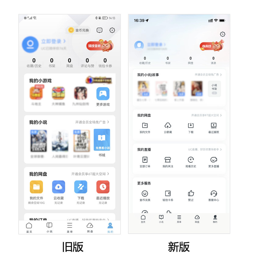 實際上,除了logo變化,UC的使用體驗也在不斷升級。記者發現,UC的使用界面較早前有了全新變化,界面設計更加簡潔清爽、富有高級感,瀏覽更加舒適暢快。明星功能小說&網盤也實現了一鍵直達,更加便捷高效。而“個人中心”則相當于用戶的“萬能口袋”,界面更加簡單、整潔、易找。