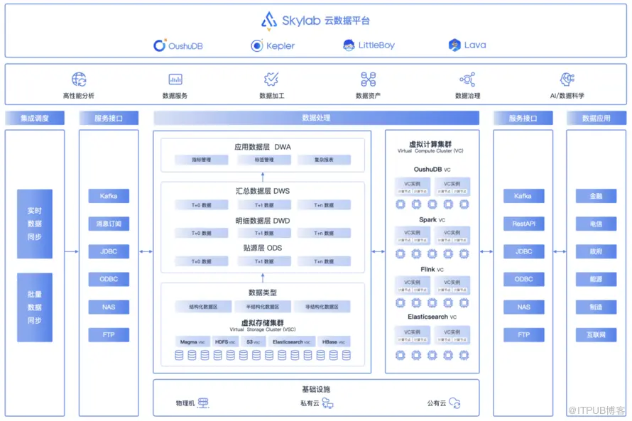 實際上偶數科技的實時數倉并非單獨的數倉產品,而是一體化的云數據平臺——Skylab,該平臺擁有四大產品組件,包括云原生數據庫OushuDB、機器學習平臺LittleBoy、數據管理平臺Lava和數據分析與應用平臺Kepler。通過ANCHOR六大特性比較,偶數Skylab具備了 All Data Types( 支持多類型數據)、 Native on Cloud( 云原生)、 Consistency( 數據一致性)、 High Concurrency( 超高并發)、 One Copy of Data( 一份數據)、 Real-Time( 實時 T+0)。