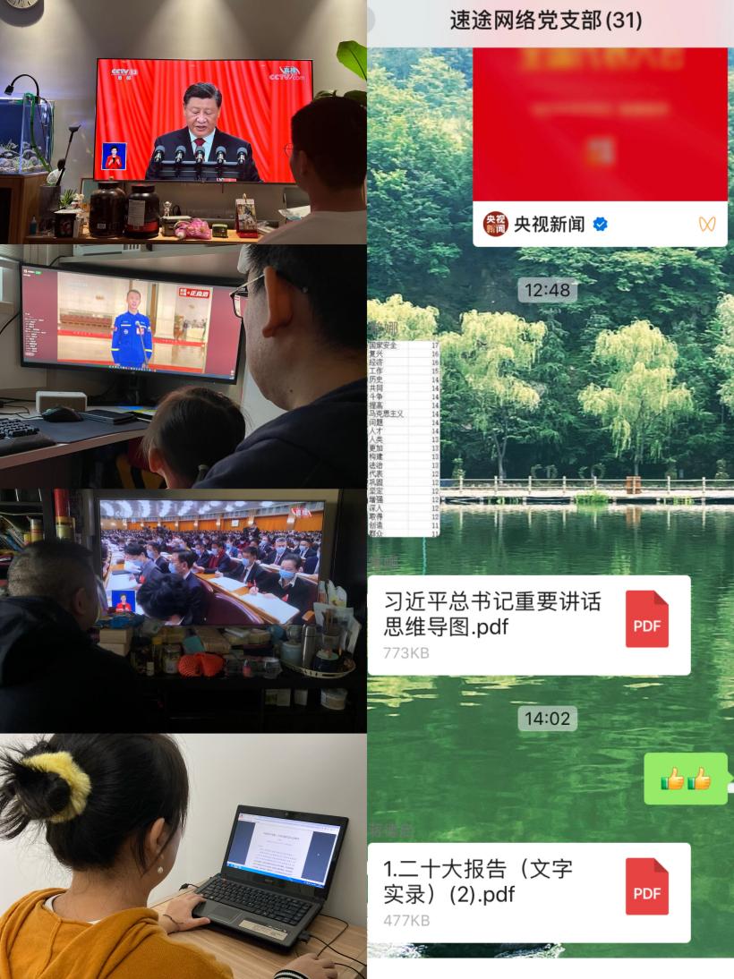 10月16日上午,中國共產黨第二十次全國代表大會在人民大會堂隆重開幕。速途網絡黨支部組織全體黨員及入黨積極分子通過線上直播學習及討論的方式收看了開幕會盛況,認真聆聽學習了習近平總書記所作的報告。