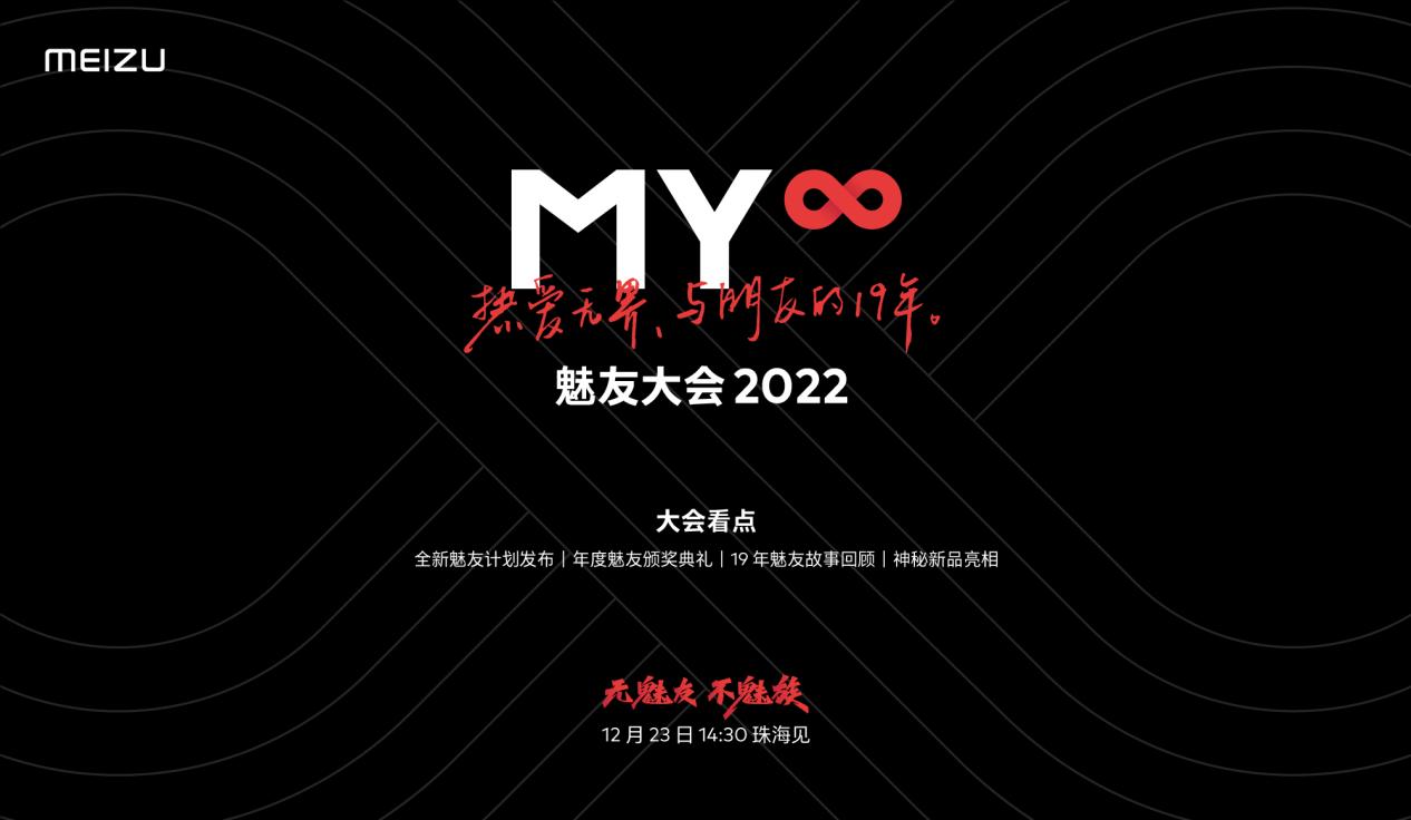12 月 23 日,魅族官方將首次發(fā)起全國性質(zhì)的魅友活動——「魅友大會 2022」,并提出「MY∞」的概念。從「MY+」到「MY∞」,寓意從地方組織的「MY Family」躍升全國組織的「MY Infinite」,并將其打造為固定形式的年度品牌用戶活動,形成新魅族的用戶文化。