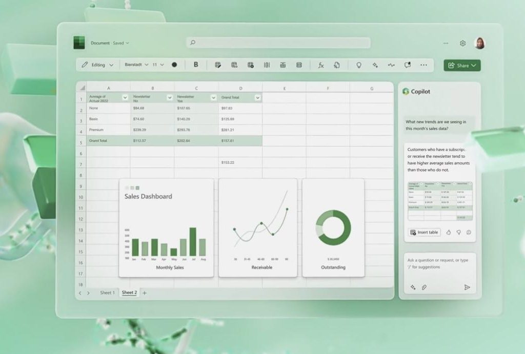 AI工具Copilot,可用于Word、Excel和PowerPoint等Office套裝中的軟件。微軟表示,新工具將幫助商業客戶更快地撰寫文檔,生成藝術畫,以及創建圖表,幫助企業的數百萬員工節省大量時間。