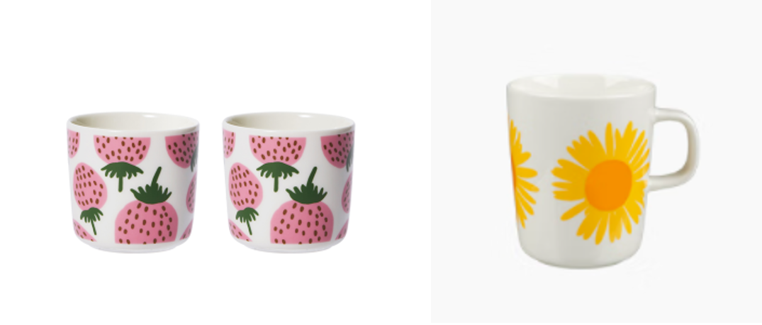 除了適合出游的穿搭,Marimekko官方旗艦店還上新了多款家居產品,通過富有大自然氣息的設計,為平淡生活增添趣味。新款Mansikka草莓印花對杯、2023早春新款AURINGONKUKKA MUG馬克杯,以色彩繽紛的印花圖案表達對自然的熱愛,有了如此兼具時尚與實用的“小可愛”,每天喝水都更有動力。