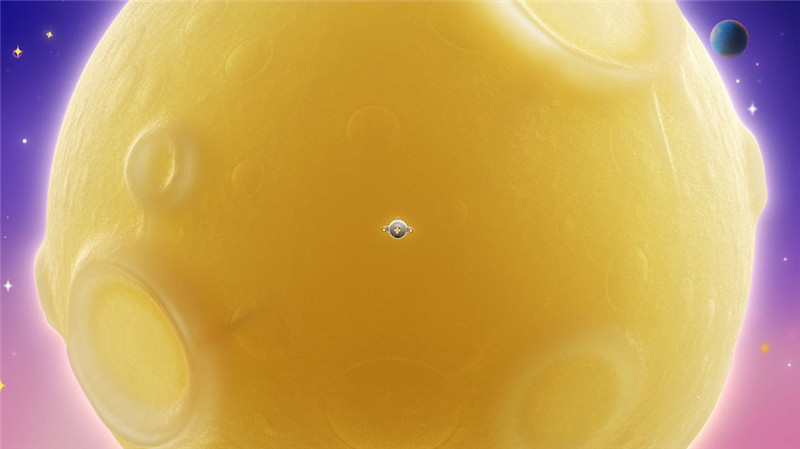 好在一番動蕩之后,飛船終于脫離了隕石帶,穩定了下來。而當他們鎮靜下來,眼前出現的卻是從未見過的浪漫景象:淡金色的星球在群星簇擁下閃耀著,溫柔的清輝照亮蛋仔們的臉龐,撫慰著來客的心靈,讓他們忘卻了驚嚇與焦慮,沉浸在宇宙的瑰麗與絢爛中。