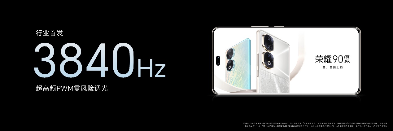 榮耀一直致力為用戶提供頂級的護(hù)眼體驗及前瞻性的屏幕技術(shù)創(chuàng)新。此次榮耀90系列創(chuàng)新帶來“零風(fēng)險調(diào)光護(hù)眼屏”,全球首發(fā)行業(yè)最高3840Hz超高頻PWM調(diào)光,并獲得TüV萊茵無頻閃認(rèn)證,帶領(lǐng)行業(yè)邁入屏幕頻閃零風(fēng)險調(diào)光時代。超高頻的PWM調(diào)光還擁有優(yōu)于DC調(diào)光低亮度顯示效果不佳的優(yōu)勢,克服了低頻PWM調(diào)光易導(dǎo)致視覺疲勞的問題,能夠兼顧飽滿色彩和護(hù)眼體驗。根據(jù)IEEE Std1789-2015國際標(biāo)準(zhǔn),當(dāng)屏幕閃爍頻率大于3125Hz時,頻閃對人眼無風(fēng)險。
