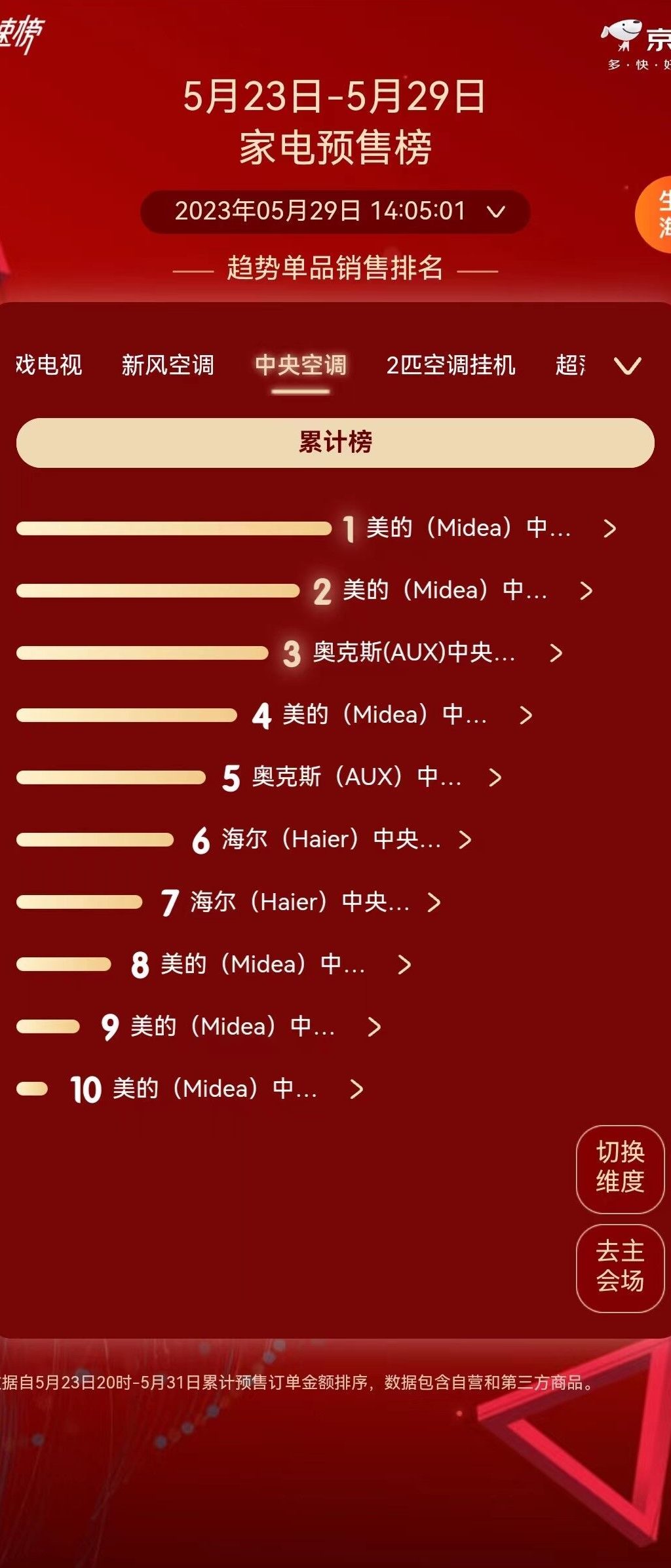 作為美的中央空調(diào)的傾心之作,美的星光科技版“自然而然”的完成了霸榜。根據(jù)京東數(shù)據(jù)顯示,美的中央空調(diào)在中央空調(diào)類目連續(xù)15個(gè)月占據(jù)熱銷品牌榜TOP1、熱銷店鋪榜TOP1,同時(shí)在4月還占據(jù)了家用中央空調(diào)熱賣榜單TOP1,而且熱度延續(xù)至今,在近期5月23日-5月29日的家電預(yù)售榜上同樣是穩(wěn)占鰲頭。不難看出,2023年美的中央空調(diào)空調(diào)可謂是全力出擊,以產(chǎn)品升級(jí)帶動(dòng)銷量增長,預(yù)售期就超過同類競品,以行業(yè)引領(lǐng)者的姿態(tài)一路前行。