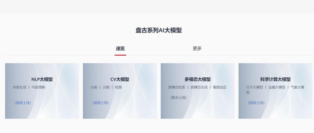 公開資料顯示,目前華為“盤古系列AI大模型”基礎層主要包括NLP大模型、CV大模型、以及科學計算大模型等,上層則是與合作伙伴開發的華為行業大模型。