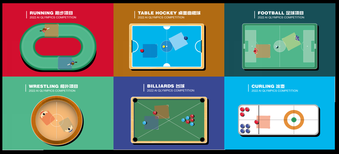 IJCAI 迄今已舉辦30多屆,作為人工智能領域規模最大、影響力最大的國際性學術會議之一,每年都會吸引全世界眾多學術界和工業界的科研工作者參與。本屆IJCAI Olympic AI競賽將六個經典的運動項目封裝成游戲環境供參賽者訓練智能體,這6個游戲包括跑步、相撲、桌球、桌面曲棍球、冰壺和足球。參賽者需要開發出能夠同時參與6個運動項目的智能體,比賽難度不容小覷。首先,此次競賽不僅匯集了來自全球的頂尖的39支參賽隊伍,其中包含一支曾在往年奪取過冠亞軍的強勁對手,競爭十分激烈;其次,如何在特定場景下訓練出可成功應對多款項目的智能體、解決游戲AI的泛化性問題,也是考驗團隊的一大難題;最后,由于智能體的可觀測信息被限制在周圍的有限范圍內,其如何能在瞬息萬變的比賽進程中,快速憑借少量信息進行決策,這也對智能體的強度提出了挑戰。