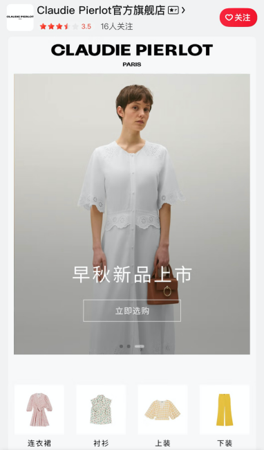 SMCP是全球首屈一指的輕奢時裝集團,其中包含SANDRO、MAJE、CLAUDIE PIERLOT三個別具特色的現代巴黎時裝品牌。其中,SANDRO呈現簡潔、知性、優雅的設計風格,熱門新品中不僅有微喇褶皺裙擺設計的黑色經典款連衣裙,還融入了多巴胺色彩、學院風等時尚元素,包括淡紫色豎條紋連衣裙、波西米亞印花長裙等,還有法式短袖襯衫等男士夏裝供選購;MAJE將重工鏤空、荷葉邊、燈籠袖等元素融入設計中,帶來淡紫色花邊收腰法式連衣裙、鏤空袖藍色緞面收腰連衣裙等新品,讓穿搭更顯個性與高級質感;CLAUDIE PIERLOT則大量運用印花、波點等復古元素,上新清新綠色茶歇連衣裙、含羞草花卉印花連衣裙等,讓夏裝在展現法式浪漫的同時也更顯文藝氣質。