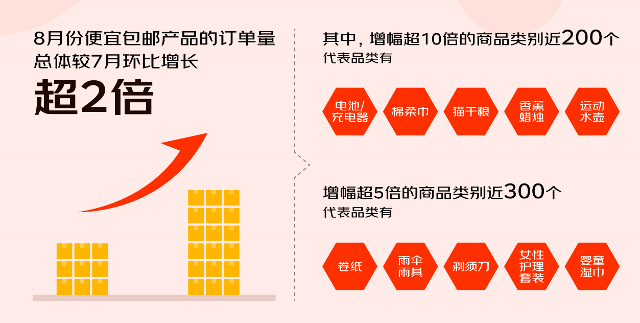 “便宜包郵”8月單量環增超2倍?萬單爆款“9.9超省日”持續破價