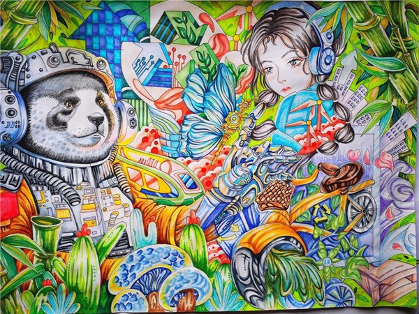 這些作品話題各異,但都共同指向科技如何改變未來生活這一社會命題,它們不僅展現了青少年對科技和未來的想象,同時也為未來城市的發展提供了新的靈感和思路,向人們展現了一幅幅未來奇幻世界圖景。